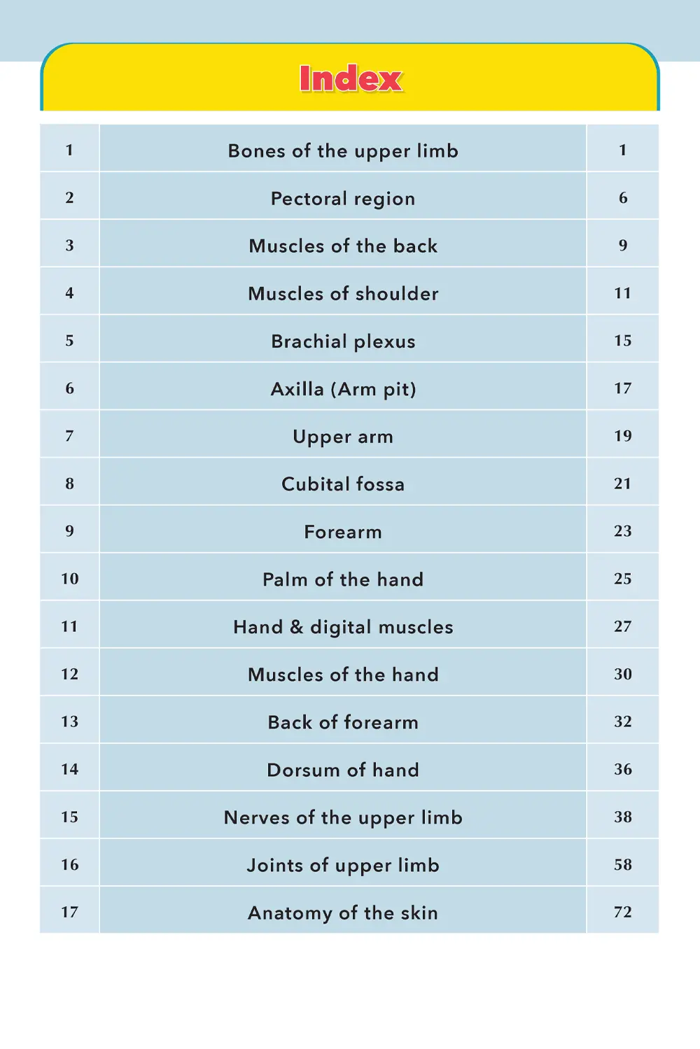 The book covers all key components of the upper limb—bones, joints, muscles, nerves, and vessels. Students will explore the shoulder region, arm, forearm, and hand in a step-by-step, logically organized format. Clinical correlations are provided throughout, linking anatomy with real-life medical and surgical practice, such as nerve injuries, fractures, and vascular disorders.
