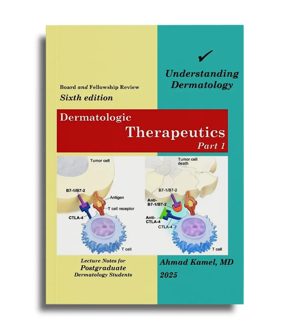 Dermatologic therapeutics Part 1 provides a comprehensive and practical overview of therapeutic approaches used in dermatology, making it an essential reference for students, residents, and clinicians who want clear, structured guidance in treating skin diseases. Written by Dr. Ahmed Kamel, the book focuses on simplifying treatment concepts and presenting them in a logical, clinically oriented format that supports real-world practice.