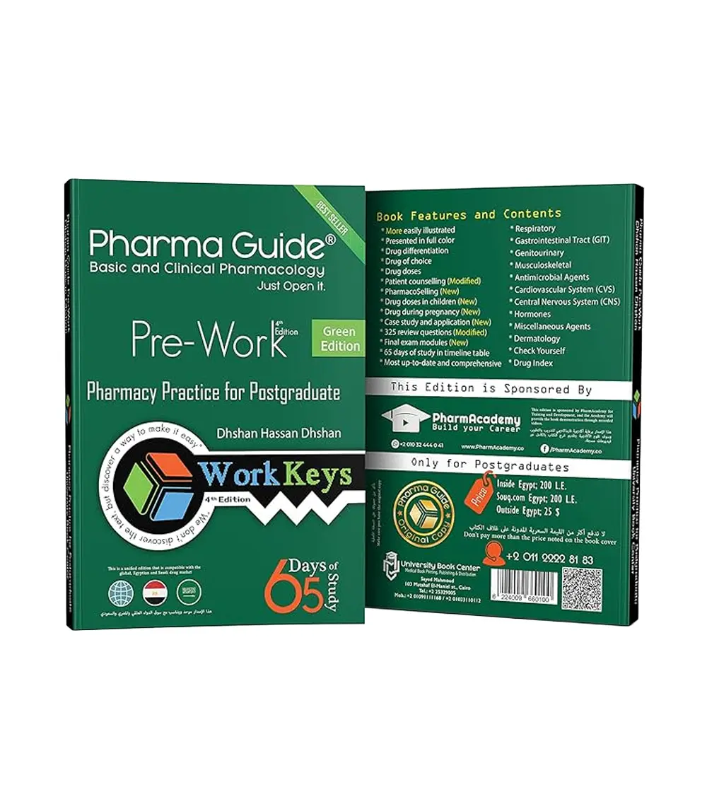 Pharma Guide Pre-Work by Dahshan Hassan Dahshan is a focused educational resource developed to prepare pharmacy graduates and postgraduate students for real-world pharmacy practice. The book is designed to bridge the gap between basic pharmacology and clinical application, helping readers transition from academic study to professional practice with confidence.