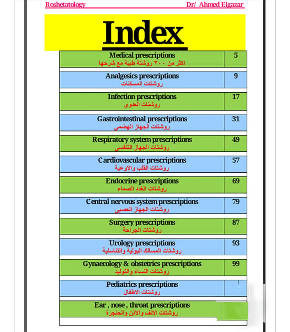Roshetatology by Dr Ahmed Elgazar is a practical guide to writing and understanding medical prescriptions in clinical settings